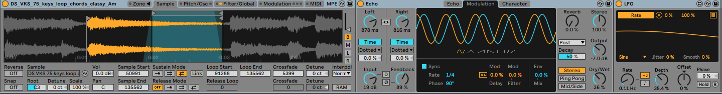 (Chain: Sampler>Delay>LFO>Chorus>Reverb)